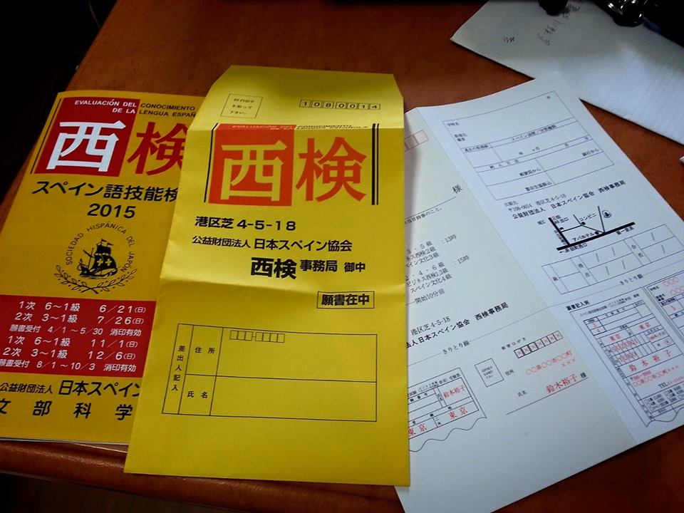 そして銀行か郵便局で検定料を振り込んだ後、振り込み明細書コピーと願書・受付票を黄色の封筒に入れてスペイン語教戒へ送り返さないといけません。はい。