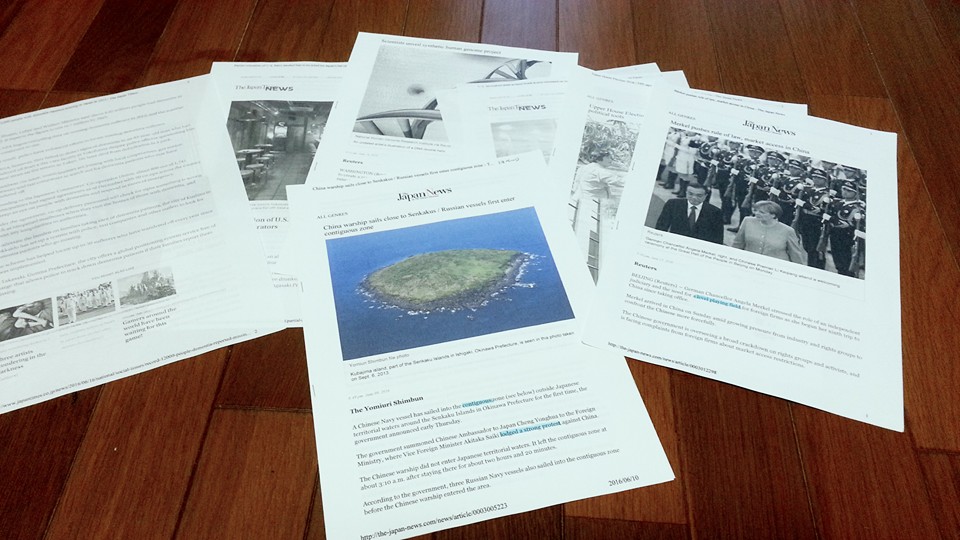同じ記事を日を置いて何度も往復しますが、3~5日おきくらいにウェブ上に落ちている新しい記事を印刷して貯めて、常に新しい記事に触れるようにしてます。